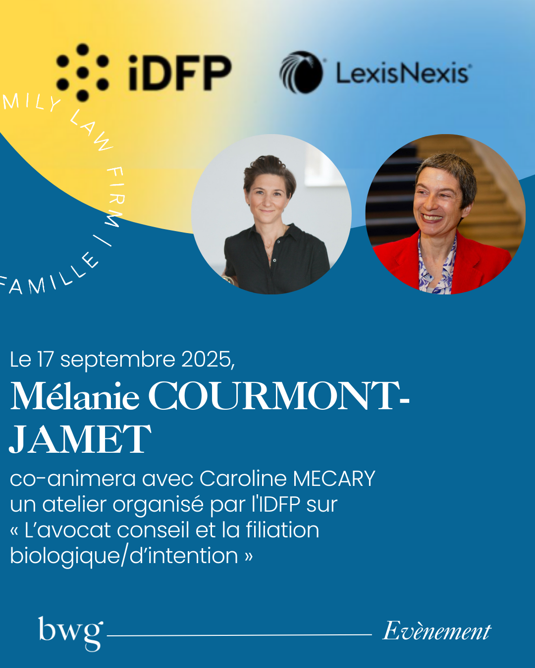 Le 17 septembre 2025, Mélanie COURMONT-JAMET co-animera un atelier organisé par l’IDFP sur « L’avocat conseil et la filiation biologique/d’intention »